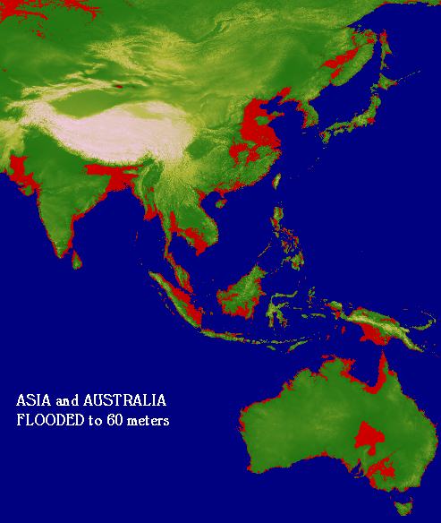 Asia and Australia 60 Meter Global Flooding