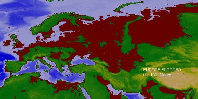Europe 100 Meters Global Flooding