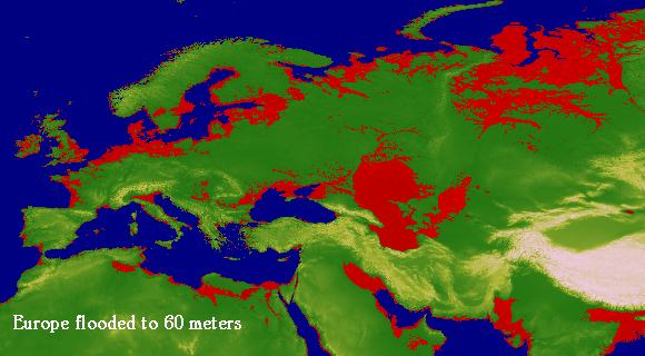 Europe Flooded to 60 Meters Global Flooding